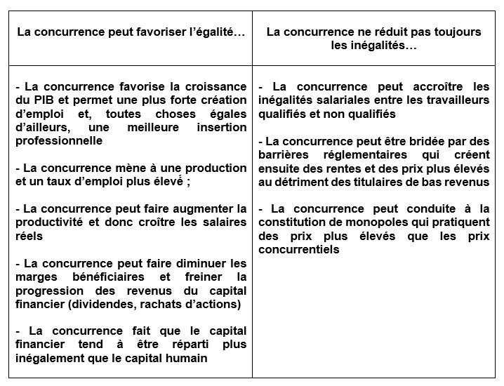 Résumer dans le tableau suivant l’impact de la concurrence sur les inégalités en synthétisant vos arguments :