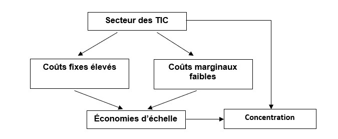 2) Réaliser un schéma pédagogique de synthèse pour montrer les mécanismes qui conduisent à une concentration dans le secteur des TIC.