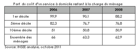 En 2008 comme en 2006, le système permet aux ménages les mieux rémunérés (le 10ème décile c’est à dire les 10 % de ménages les mieux rémunérés) de ne supporter que la moitié de ce que leur coûte le recours aux emplois à domicile. En revanche, pour les ménages du 1er décile (les 10 % de ménages les plus pauvres), qui sont structurellement moins susceptibles d’engager une personne à domicile mais qui peuvent y être tenus par des situations spécifiques, l’aide fiscale reste minime. Sur 100 € dépensés pour un emploi de services à la personne, 88 restent à la charge du ménage.