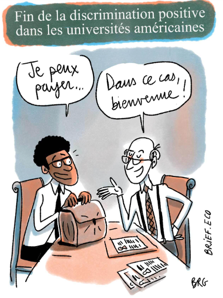 La Cour suprême des États-Unis, la plus haute juridiction américaine, a jugé cet été (jeudi 29 juin 2023) que les programmes de discrimination positive de l’université privée de Harvard et de l’Université de Caroline du Nord étaient contraires à la Constitution. Cette décision fait jurisprudence et s’appliquera à l’enseignement supérieur dans son ensemble dans des cas similaires. La Cour suprême considère que les mesures visant à favoriser les minorités ethniques dans la sélection des étudiants s’appliquent au détriment des étudiants blancs et d’origine asiatique.« Je suis fortement, fortement en désaccord avec la décision de la Cour », a réagi le jour même le président des États-Unis, Joe Biden. « La discrimination existe toujours en Amérique », a-t-il répété à trois reprises. Aux États-Unis, la discrimination positive, appelée « affirmative action », a été lancée dans les années 1960 afin de lutter contre les discriminations raciales, puis de genre, dans l’emploi, l’attribution de marchés publics et l’admission dans les universités. L’Inde avait déjà mis en place des mesures similaires à partir de 1950, en faveur de certaines castes et des intouchables, qui figurent à l’échelon le plus bas des classes sociales indiennes.