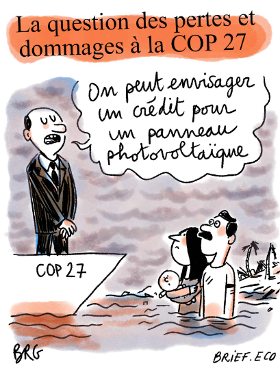 Le « financement des pertes et dommages » est pour la première fois au programme des discussions officielles de la COP27. Cette 27e édition d’une conférence annuelle sur le climat se tient jusqu’au 18 novembre à Charm el-Cheikh, en Égypte. Elle réunit les 197 parties (l’Union européenne et 196 États) de la Convention-cadre des Nations unies sur les changements climatiques.Les pertes et dommages correspondent aux dégâts irréversibles causés par le changement climatique, lui-même généré par les gaz à effet de serre émis par les activités humaines. Le Groupe des 77, une coalition regroupant aujourd’hui une centaine de pays en développement, réclame la création d’un fonds d’aide pour les pays vulnérables. « Les pays qui sont les moins responsables des émissions sont les plus affectés par le changement climatique », a déclaré le ministre égyptien des Affaires étrangères et président de la COP27, Sameh Choukri, le 6 novembre, en ouverture de la conférence.Fin septembre, le secrétaire général de l’ONU, Antonio Guterres, avaitdemandé aux pays développés de « taxer les profits exceptionnels des entreprises productrices d’énergies fossiles ». Il proposait d’affecter une partie du produit de cette taxe aux « pays souffrant de pertes et domm