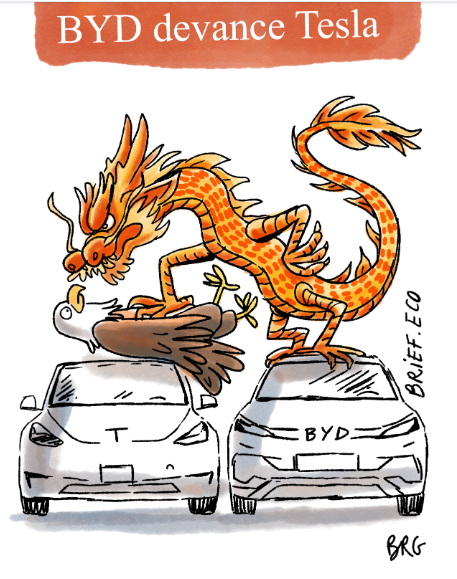 En 2022, BYD a vendu plus de voitures hybrides et électriques que Tesla (mais moins de véhicules à motorisation 100 % électrique). Cette même année, il a annoncé qu’il arrêtait la production de ses véhicules à motorisation uniquement thermique. En plus de l’automobile, BYD est présent dans les secteurs des batteries, des panneaux solaires ou encore du transport ferroviaire. L’entreprise est cotée depuis 2002 à la Bourse de Hong Kong et depuis 2011 à la Bourse de Shenzhen. Le modèle économique de BYD repose sur l’intégration verticale, c’est-à-dire sur le contrôle des différents stades de production d’un véhicule. BYD produit en interne 75 % des pièces équipant ses voitures, y compris les batteries, contre 30 % en moyenne pour les constructeurs historiques tels que le français Renault, analysait le groupe bancaire UBS dans une étude de septembre. « En réduisant les intermédiaires » (sous-traitants et fournisseurs), BYD préserve « sa marge », qu’il peut « investir dans son propre développement technologique », écrivait l’analyste du marché automobile Kevin Mak dans une note publiée en mars. S’agissant des batteries, l’entreprise maîtrise la totalité de la chaîne de production en possédant ses propres mines de lithium. Sur le marché des batteries, BYD s’impose comme le deuxième producteur mondial après le groupe chinois CATL,selon les données du cabinet d’étude SNE Research, ce qui lui permet d’écouler une partie de sa production auprès de ses concurrents (BMW, Audi, Toyota, Tesla, etc.).