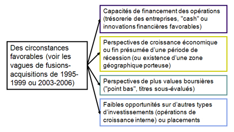 Les concentrations ont souvent lieu par vagues . L’exemple présent ne fait pas exception à la règle. Certaines circonstances favorisent en effet ces opérations. La crise a profondément bouleversé le paysage bancaire en France et dans le monde. Certains acteurs ont été plus touchés que d’autres, ce qui a créé des opportunités de rachat, comme dans le cas de Fortis en grande difficulté, pour BNP Paribas. La course à la taille est ainsi lancée. Celle-ci peut aussi contribuer à redonner de la confiance dans le système bancaire durement touché.