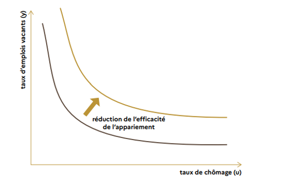 La courbe de Beveridge montre que les fluctuations économiques génèrent des mouvements le long de la courbe vers la gauche ou vers la droite.
