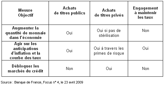 La crise a donc contraint de nombreuses banques centrales à élargir la gamme des crédits qu’elles refinancent et à acheter directement des titres financiers (billets de trésorerie, obligations privées, bons hypothécaires) qui offrent des garanties de moindre qualité que les titres d’État habituellement admis en garantie.