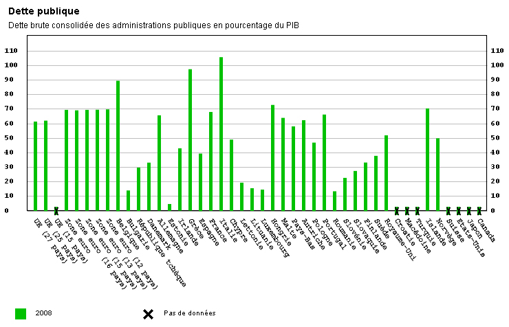 Si les situations nationales sont diverses, la tendance est identique dans tous les pays développés. La dette publique « explose» à la suite des plans d’intervention d’urgence pour sauver certaines institutions financières et la mise en oeuvre des plans de relance de l’activité économique. L’accroissement des engagements publics va de pair avec une contraction des recettes fiscales des Etats, consécutive au ralentissement de l’activité. Le Trésor américain émet, depuis la fin de 2008, des milliards de dollars d’emprunts d’Etat, destinés à soutenir les banques et à sauver de grandes entreprises, notamment dans le secteur automobile. Ces emprunts obligataires sont, pour une large part, souscrits par la Réserve fédérale qui les finance par des émissions de liquidités. La plupart des grands pays européens ont suivi les mêmes recettes, dans des proportions jusqu’alors inconnues. Ainsi le déficit public en France devrait avoisiner, selon les prévisions officielles, les 105 milliards d’euros, soit un doublement sur un an, atteignant entre 5 et 7 % du PIB en 2009. La dette publique globale française, qui représentait 68 % du PIB en 2008, devrait atteindre 75 % en 2009 et s’approcher des 80 % en 2010–2011. Tous les pays développés sont, à des degrés divers, confrontés à la même situation : ainsi, le déficit 2009 dépassera 10 % du PIB aux Etats-Unis, au Royaume-Uni, en Irlande, et le ratio dette publique/PIB s’approche tendanciellement des 100 %, certains pays comme le Japon, la Grèce et l’Italie ayant depuis plusieurs années dépassé ce seuil.
