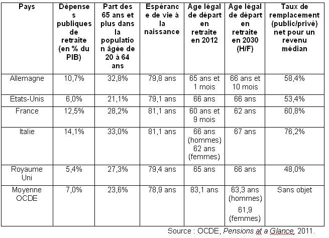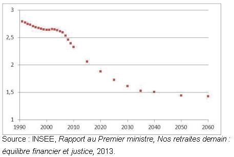 - Le premier, de nature démographique, est commun à tous les pays développés : le vieillissement continu de la population, résultant de l’allongement constant de l’espérance de vie et de la baisse du taux de fécondité, contribue à l’accroissement structurel du poids des plus de 60 ans dans la population. Cette évolution à long terme est aggravée par l’accès à la retraite des classes d’âge de l’après-guerre qui entraîne une augmentation du nombre de retraités et des dépenses du système de retraite. - Le second constat, plutôt d’ordre économique et social, est plus spécifique à l’Europe et il est particulièrement accentué en France : c’est la diminution de la durée de la vie active. Elle s’explique à la fois par une entrée plus tardive des jeunes sur le marché du travail (22 ans aujourd’hui contre 18 il y a 30 ans) et par une diminution importante de l’âge moyen de la cessation d’activité (58,9 ans contre 62,4 ans) qui tient à la chute du taux d’activité des salariés âgés (les « séniors ») de 55 à 64 ans (40% contre 60% il y a 30 ans). Par ailleurs, la montée d’un chômage de masse, qui réduit le nombre de cotisants, se traduit par une baisse des ressources du système.