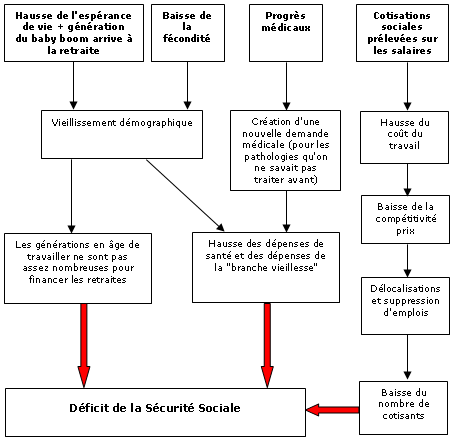 La dégradation du premier s'explique par la poursuite des départs massifs à la retraite de la génération du baby boom et des actifs ayant commencé à cotiser à 14 ans. Le second résulte d'un amoindrissement des ressources, en raison de deux hypothèses :