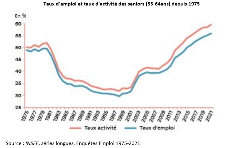 - Des chiffres pour comprendre l’évolution du taux d’emploi des seniors en France depuis 1975.