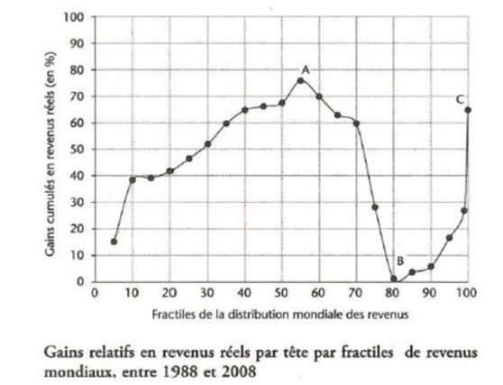 L’un des apports de cette courbe est donc de mettre à jour le fait que les inégalités se sont accrues en faveur des plus riches qui sont ceux qui ont le plus profité de la mondialisation.