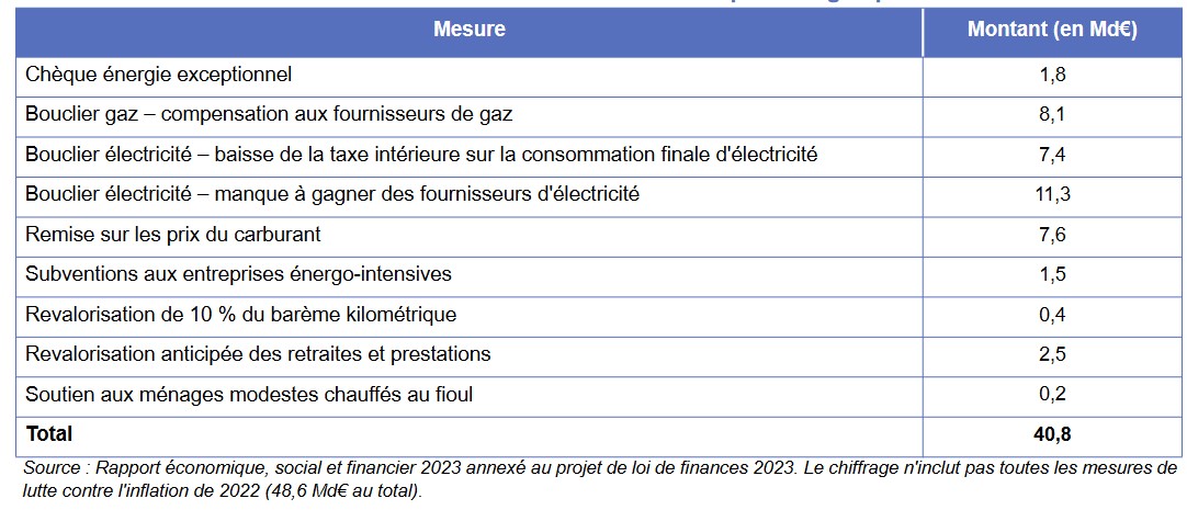 « Les finances publiques prennent en charge en 2022 une partie importante des pertes subies par les ménages et par les entreprises, via les mesures adoptées par le gouvernement pour faire face aux hausses de prix de l’énergie.