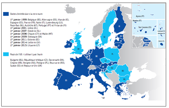 Au 1er janvier 1999, tous les pays de l’UE-15 adhèrent à l’euro à l’exception du Royaume-Uni, du Danemark, de la Suède et de la Grèce. Entre 1999 et décembre 2001, l’euro remplace progressivement les monnaies nationales qui ont adhéré à la monnaie unique. Les pays qui intègrent l’UE après Maastricht doivent rejoindre à terme la zone euro.