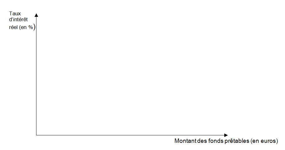 Sachant que l’offre de fonds prêtables est déterminée, toutes choses égales par ailleurs, par le taux d’intérêt réel, représentez-la par une droite sur ce marché et exprimez par une phrase la relation induite.