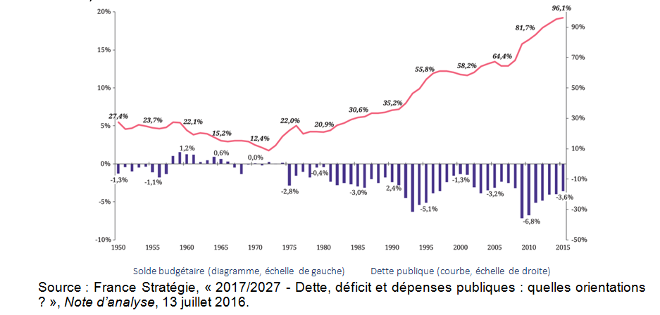 Document 1 : Solde budgétaire et dette publique en France depuis 1950 (en % du PIB)