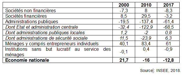 Document : Capacité ou besoin de financement des secteurs institutionnels en milliards d’euros
