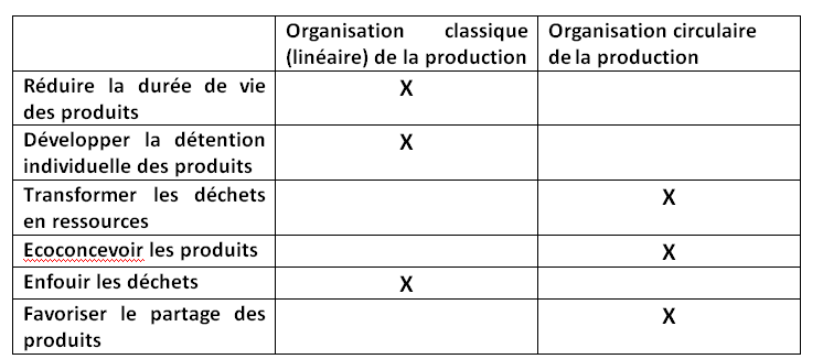 Activité 2 : Compléter le tableau comparant le mode d’organisation économique linéaire (classique) et le mode d’organisation circulaire
