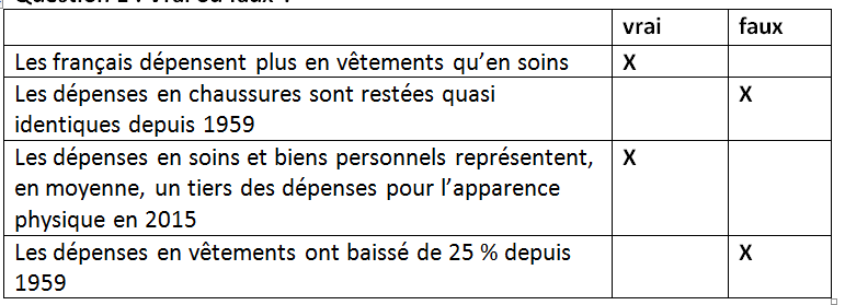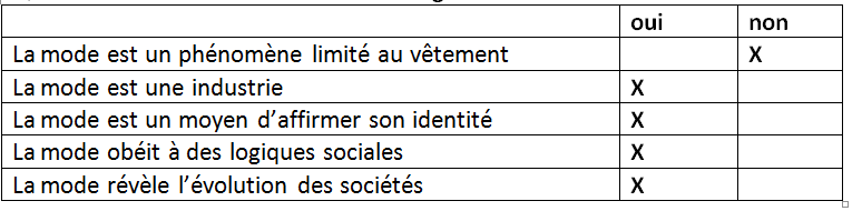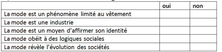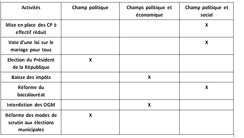 Question : cocher le ou les domaines des sciences sociales concernés par l’affirmation proposée.
