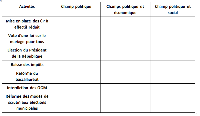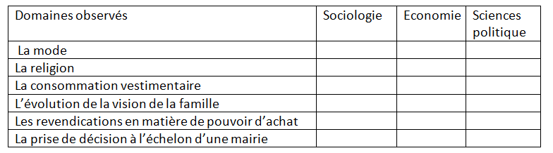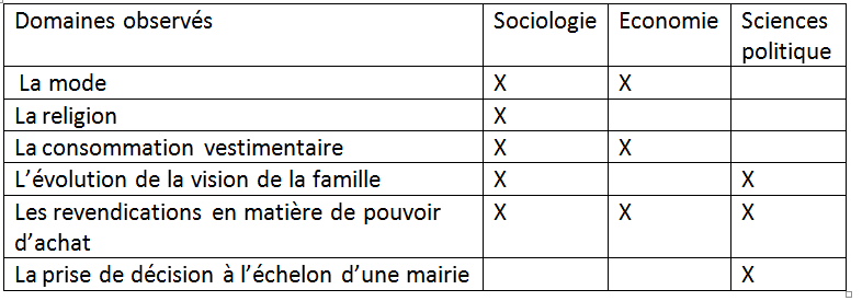 Cocher le ou les domaines des sciences sociales concernés par l’affirmation proposée.