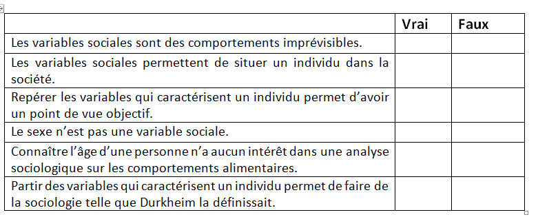 Ces informations constituent des descriptions indispensables à la sociologie. Qu’ils réalisent des observations, qu’ils conduisent des entretiens, qu’ils passent des questionnaires, les sociologues recourent à des descriptions d’individus, de situations ou de groupes. Sans ces descripteurs (…), la sociologie ne pourrait pas réaliser des analyses de la réalité sociale. Comme ces descripteurs désignent les traits de la réalité qui varient d’un individu ou d’une situation à une autre, ils sont souvent appelés « variables ».