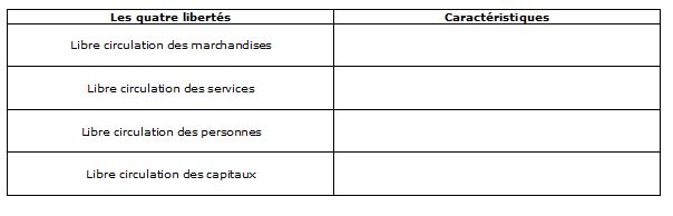 Caractérisez les modalités permettant d’établir les 4 libertés en remplissant le tableau ci-dessous.