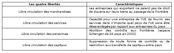 Document 2 : Le marché unique est fondé sur quatre libertés.