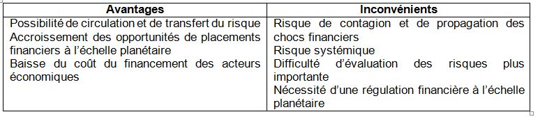 1. Récapitulez dans un tableau les avantages et les inconvénients de la globalisation financière.