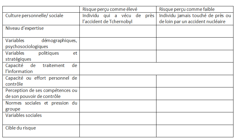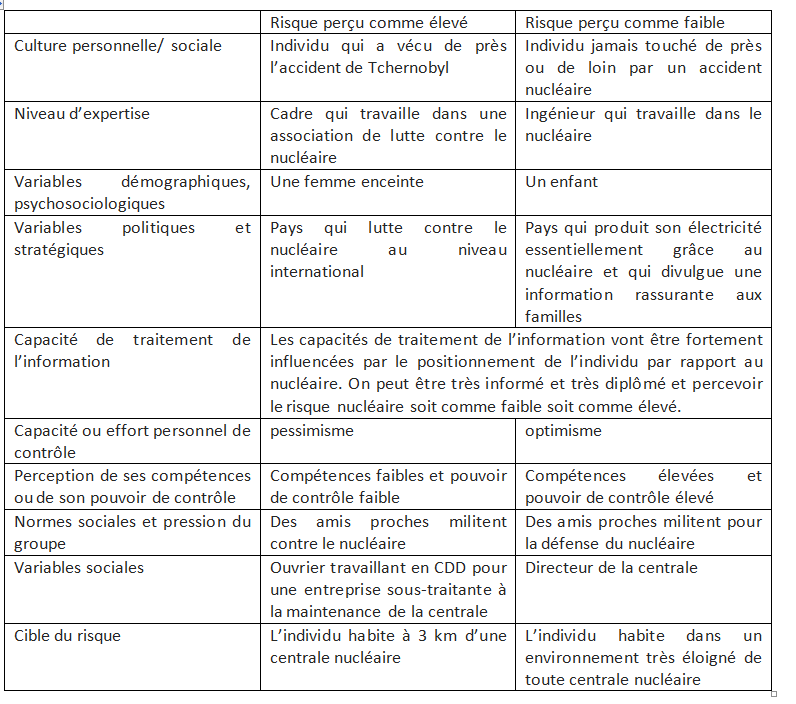 - Risque perçu : vécu par les gens sur le mode de l’émotion.