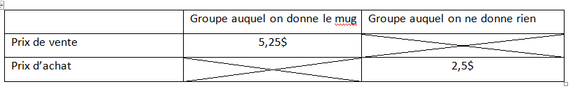 4/ Ceux qui sont en possession du mug lui attribue plus de valeur que ceux qui ne l’avaient pas