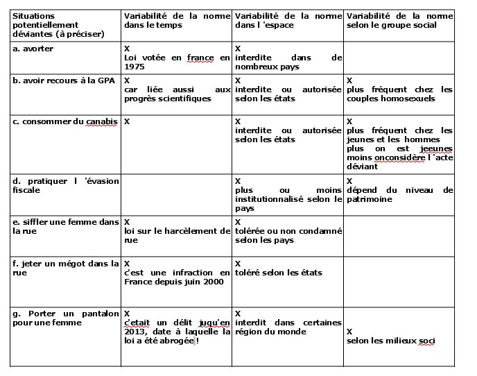 Identifiez et présentez plusieurs situations qui montrent que la déviance est définie avant tout par le groupe au delà de la question de l 'acte. Repérez également la variabilité des sanctions qui l'accompagnent.