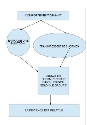 La déviance est donc définie par rapport aux normes qui sont à leur tour variables ce qui en fait tout autant un état qu'un processus comme l'établiront les théories interactionnistes.
