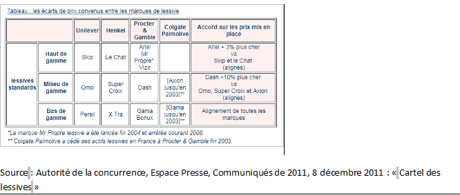 3- Les accords convenus sur les prix entre les producteurs de lessives