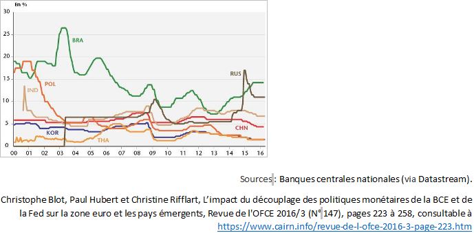 Pourquoi observe-t-on un décrochage important du taux directeur dans tous les pays industrialisés ? Est-ce également le cas dans les pays émergents ?