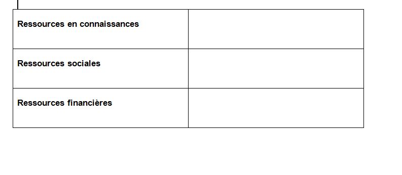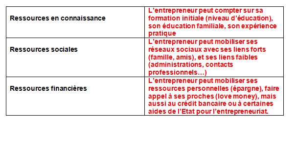 Résumer dans le tableau suivant les diverses ressources sur lesquelles l’entrepreneur peut s’appuyer pour développer son activité.