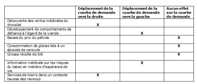 2. Dans le cas ces situations présentées, indiquer son effet sur la courbe de demande du bien cité :