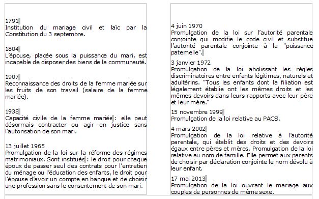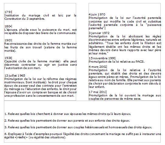1. Relevez quelles lois cherchent à donner aux épouses les mêmes droits qu’à leurs époux.