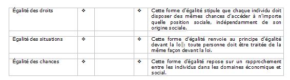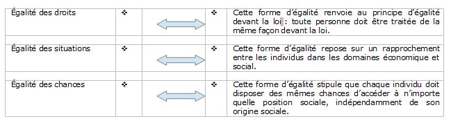 1. Les différentes formes d’égalité et les principes qui les fondent