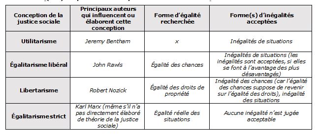2. Qu’est-ce qui est considéré comme juste par les différentes conceptions de la justice sociale ?