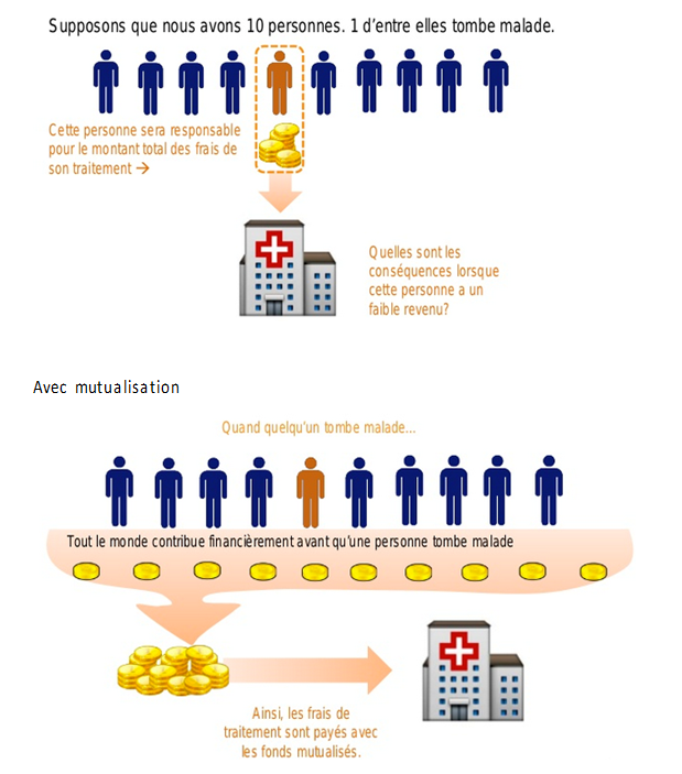 1/ Sans mutualisation, c’est l’individu soumis au risque (celui qui tombe malade) qui en assume seul la charge (il va donc payer les frais de son traitement). Si cette personne a un faible revenu, cela peut conduire au surendettement.