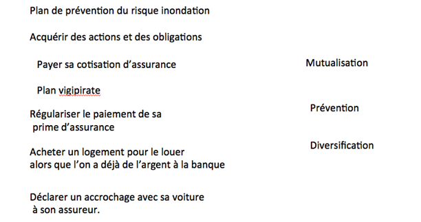 la mutualisation, la gestion collective des risques, la diversification, la prévention.
