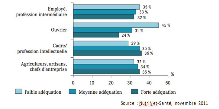 La catégorie socioprofessionnelle influence bien l’adéquation aux recommandations du PNNS.