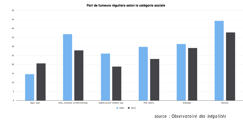 4/ Expliquez pourquoi il y a une plus grande part de fumeurs chez les ouvriers que chez les cadres.