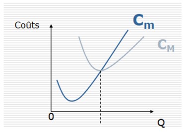 Le coût marginal est noté Cm ; le coût moyen est noté CM.