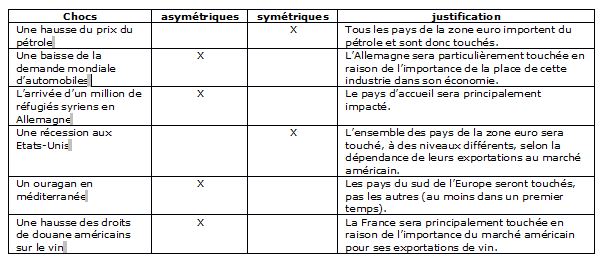 Distinguez les chocs symétriques des chocs asymétriques pour la zone euro et justifiez :