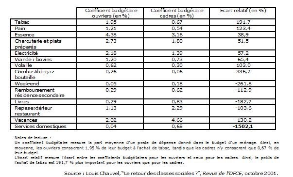 Le poids de l’achat de services domestiques est 1502,1 % moins important pour les ouvriers que pour les cadres.