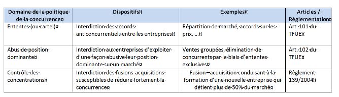 La politique de la concurrence s’appuie sur :