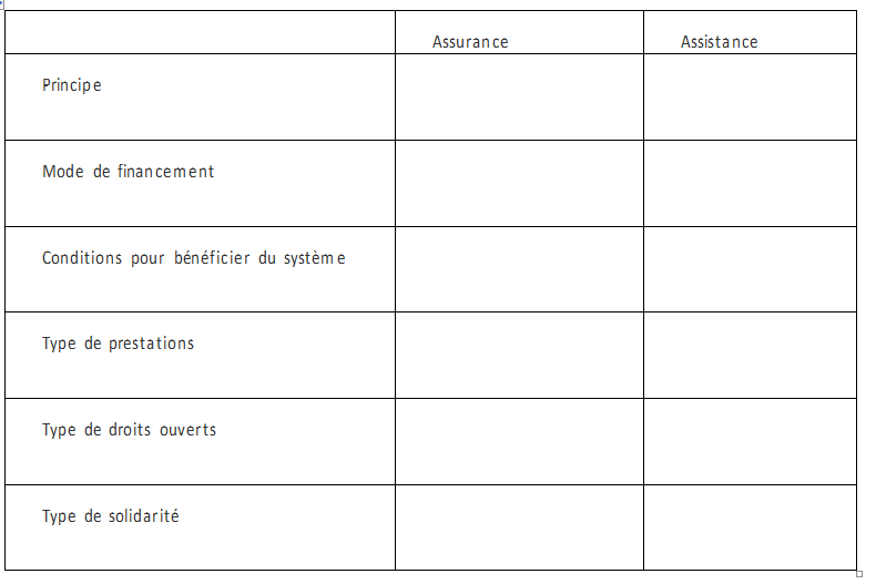 Comparez les deux logiques de protection sociale sur les points proposés par le tableau suivant :