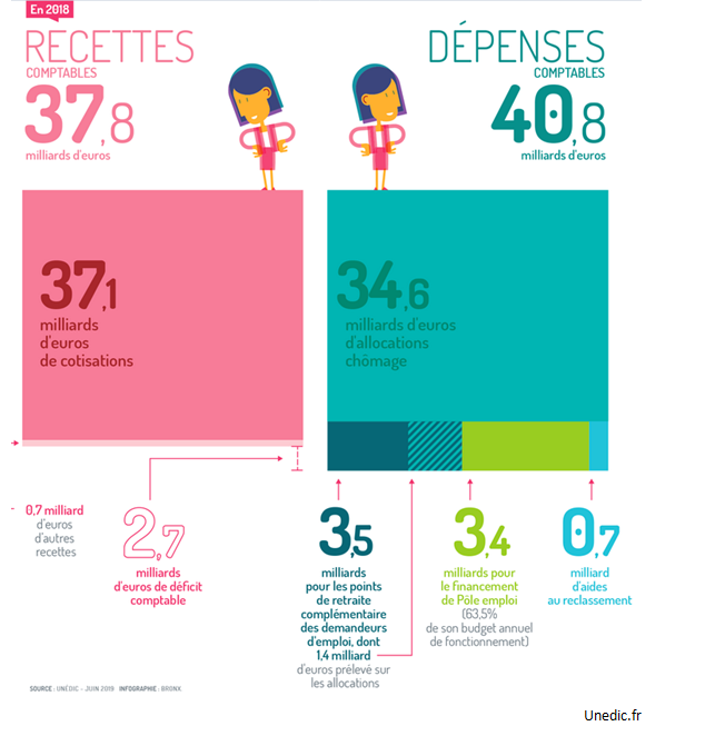 Document 1 : les recettes et les dépenses de l’Unedic (Union Nationale Interprofessionnelles pour l’emploi dans l’industrie et le commerce)