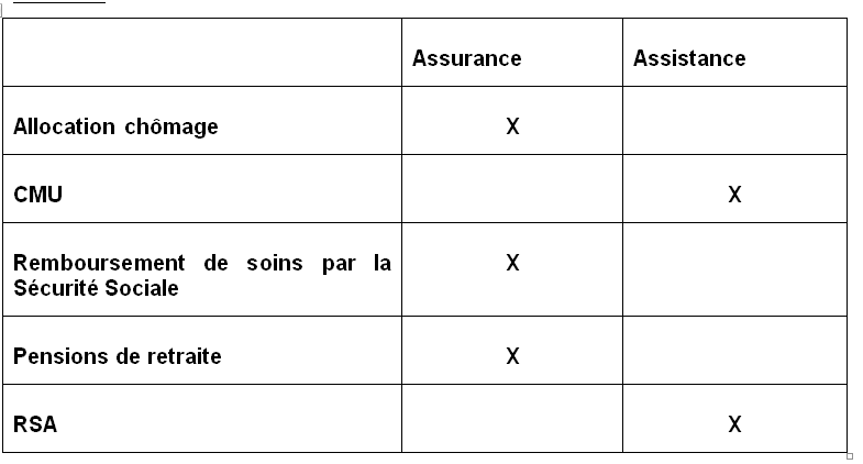 3/ le système français de protection sociale est essentiellement assurantiel, néanmoins certains individus n’ont jamais cotisé ou pas assez longtemps, ils bénéficient alors du système de l’assistance.