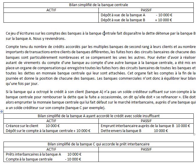 Cet emprunt interbancaire rend possible le jeu d’écritures sur les comptes des banques A et B à la banque centrale.