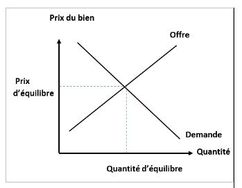 Le point de rencontre des deux courbes détermine donc le prix d’équilibre et la quantité échangée.